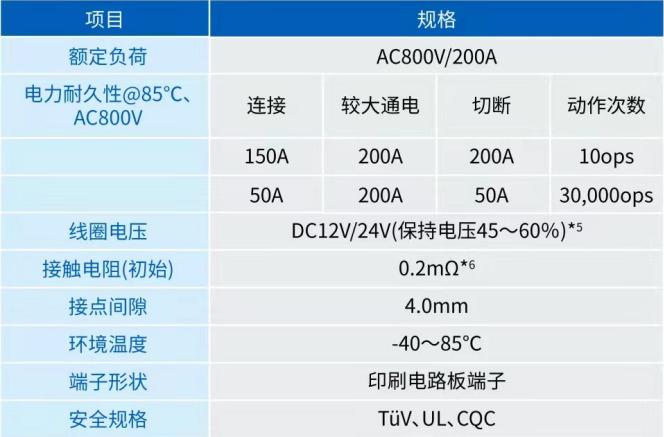 可接通、切斷200A(AC800V)的電流,所以可用于需要切斷較大電流負荷的機器或應用程序上,還可替代主要用于高容量電力控制的電流接觸器。