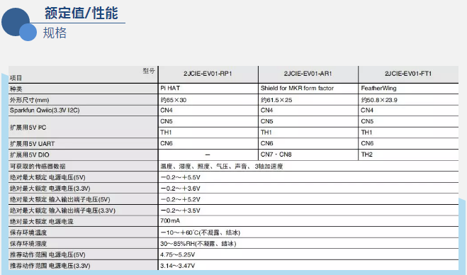 2JCIE-EV評(píng)估板共有以下三種型號(hào):2JCIE-EV01-RP1、2JCIE-EV01-AR1、2JCIE-EV01-FT1,分別對(duì)應(yīng)了Raspberry Pi*1、Arduino*2、Adafruit*3三大平臺(tái)。