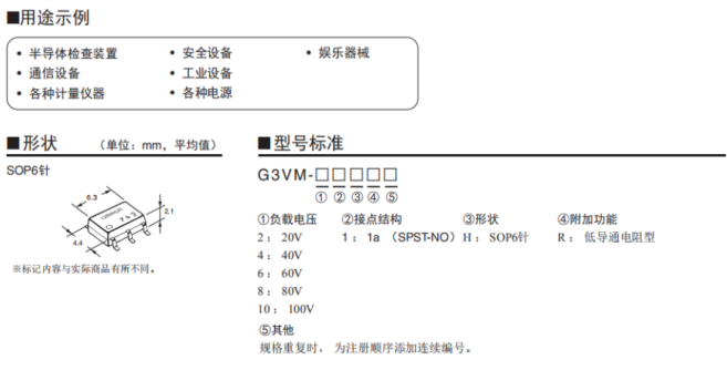 行業超小級別的低驅動電流0.2mA超高靈敏度型,例如:(G3VM-61G3,G3VM-201G2,G3VM-401G1)