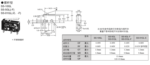 所以,對于微動開關品牌的選擇還是不能馬虎的,鼎悅小編為您推薦世界知名品牌歐姆龍微動開關:具有超高安全、超長壽命、超小尺寸的微動開關SS系列。 具體技術參數: