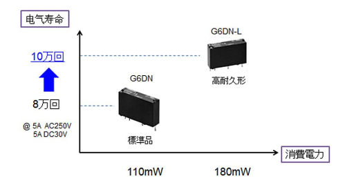 與傳統的工業用繼電器不同,工業自動化行業對于電子繼電器有著更高的要求,為滿足這一市場要求,日前,歐姆龍特別推出了G6DN系列繼電器,可用于工業自動化設備內部PCB板上,實現高電流切換5A( AC250V、DC30V )及交叉雙觸點實現高可靠性。該產品包括標準型和-L型兩種型號,其中,G6DN-L相較于G6DN標準型擁有更高電氣壽命。