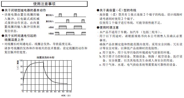 注:上述為初始值 *1.測量條件:根據電壓下降法,在DC5V?1A的條件下 *2.測量條件:在環境溫度23℃、施加額定線圈操作電壓的條件下。負載比:請在10%以下使用。 *3.測量條件:用DC500V絕緣電阻計測量與耐壓項目中相同的部位。 *3.在最小脈沖寬度30ms的條件下開關。 |