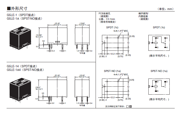 G5LE 印刷基板用功率繼電器