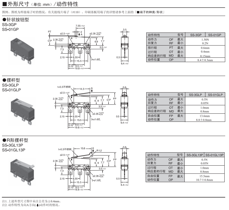 SS-P小型微動(dòng)歐姆龍開(kāi)關(guān)