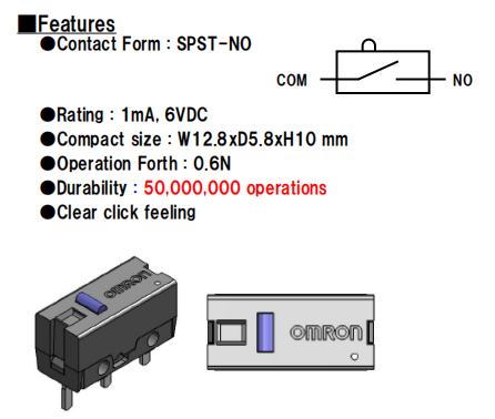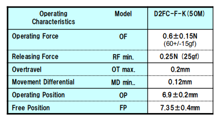 D2FC-F-7N 500萬次歐姆龍鼠標開關