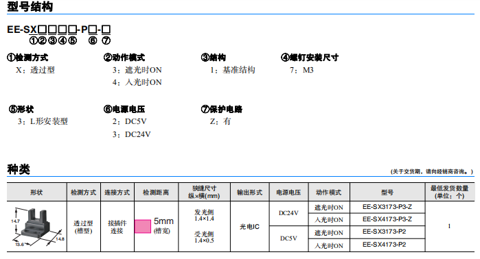 EE-SX3173/4173-P防塵光電歐姆龍傳感器