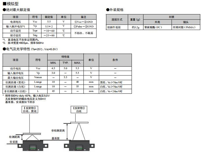 穩(wěn)定檢測鏡面、黑色及透明物體等各種物體不受背景影響,切實檢測希望檢測的物體< 距離的穩(wěn)定性 >檢測范圍廣,因此耐物體位置偏移強不易受外部干擾影響的設計備有模擬電壓輸出和數(shù)字輸出備有55mm和10mm的檢測距離" />